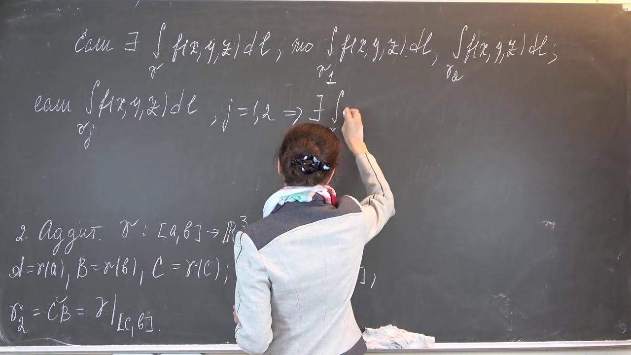 0:48 - продолжение (натуральная параметризация) 05:00 — свойства криволинейных интегралов (без док-ва) 18:41 — Кусочно гладкие кривые. Определение. 24:40 — Определение циркуляции. 25:39 — Определение простого контура. 38:00 — Формула Грина 1:26:30 — Вычисление площади фигур с помощью формулы Грина 1:29:25 — Пример
