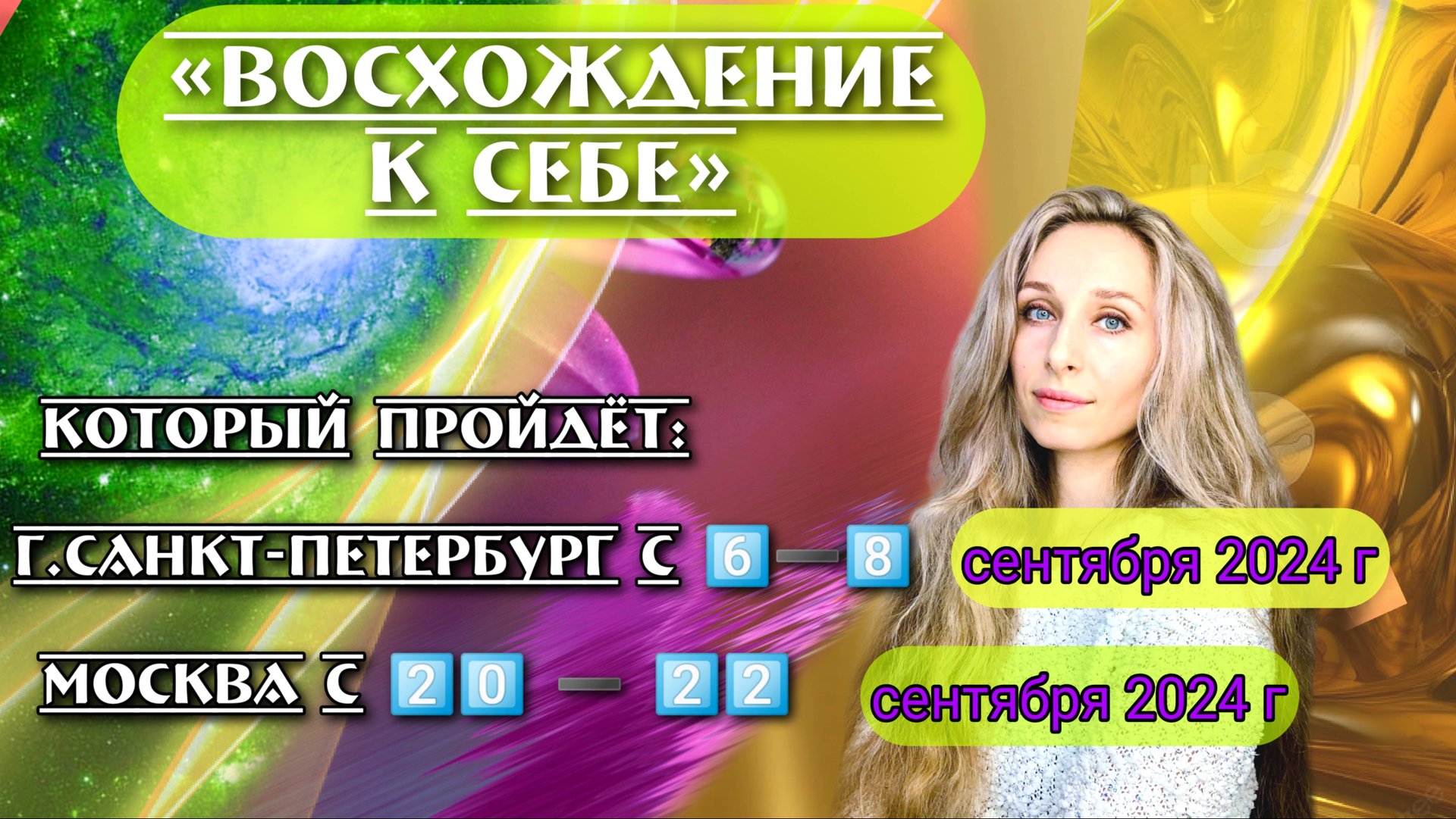 Друзья, приглашаю вас на практик-семинар «Восхождение к себе», который пройдёт: 👉 в г. Санкт-Петербург с 6️⃣➖8️⃣ сентября 2024 года. 👉 в г. Москва с 2️⃣0️⃣ ➖ 2️⃣2️⃣ сентября 2024 года. 🍀 Количество участников ограничено: 40 человек. Подать заявку на участие можно по ссылке https://andreiko-alena.ru/courses/ На семинаре вы: - окунётесь в энергии пробуждения и эволюции; - проведёте анализ своего потенциала; - научитесь модулировать потоки божественных энергий; - увидите себя без прикрас со всеми энергопаразитами и без них; - прокачаете эфирным дыханием свои цары (чакры); - научитесь материализовывать желаемые события; - обретёте инструменты для вспоминания прошлых жизней; - запустите процессы эволюции; - научитесь работать с энергией Кондал (Кундалини); Подать заявку на участие можно по ссылке https://andreiko-alena.ru/courses/