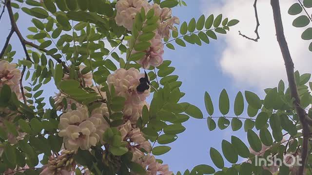 Пчела плотник на розовой акации. Пятигорск. Дорога к скульптуре Орла