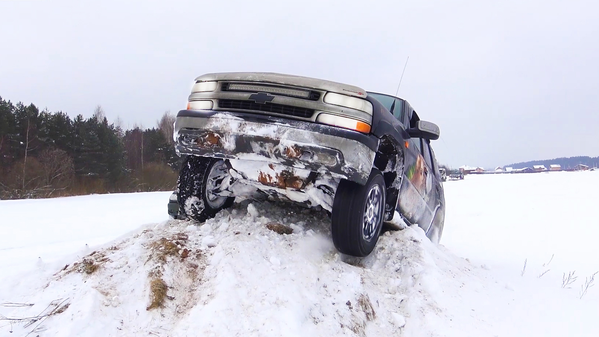 Бандит на Шевроле Тахо соревнуется в проходимости на бездорожье с региональными джиперами на Нивах и УАЗ. Посмотрим, кому покорится глубокий снег и рельеф!