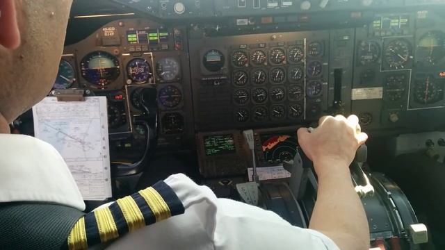 Вид из кабины пилота во время маневров при заходе на глиссаду. Посадка самолета Боинг 747