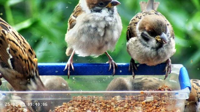 Воробьи в кормушке -