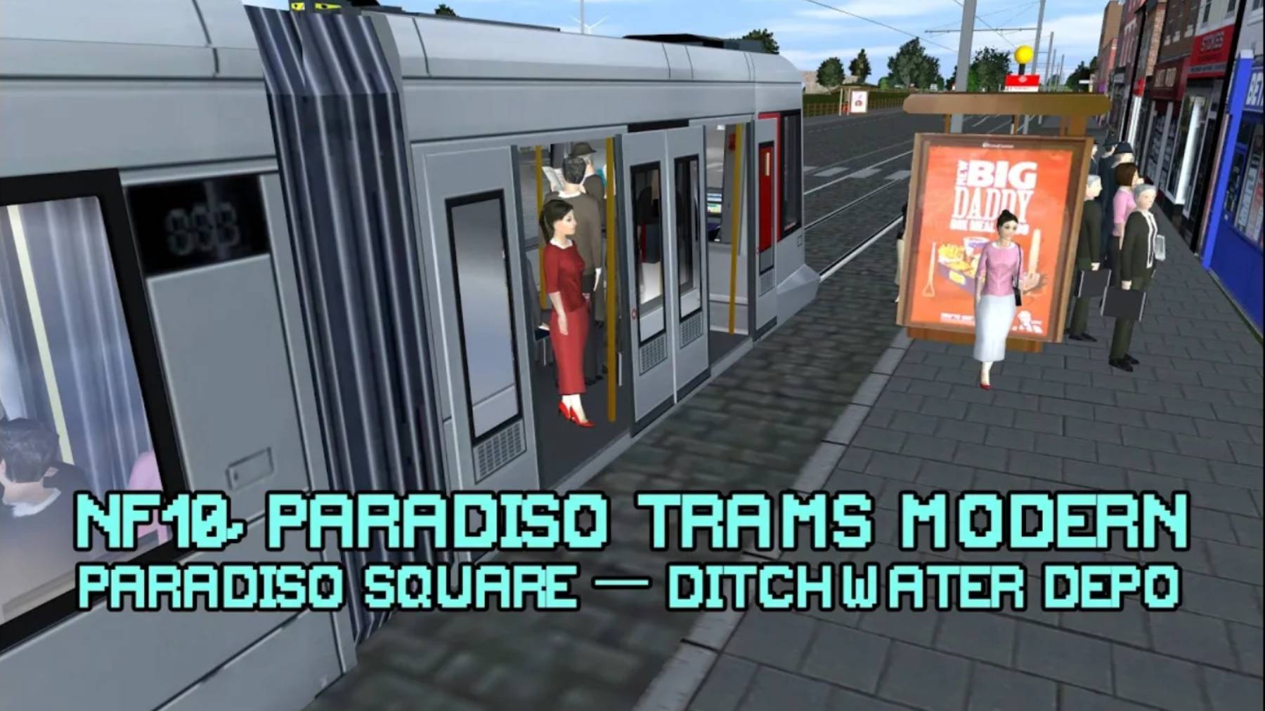 Trainz: NF10, трамвай Paradiso Square — Ditchwater Depo, Padariso Trams Modern