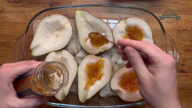 @Fun_And_Easy_Cooking_For_All Baked pear with Camembert cheese Cooking time: 50 minutes Ingredients: 3 large pears, 2 Camembert cheeses, 50 g walnuts, 25 g hazelnuts, 6 teaspoons of favorite jam, 3 teaspoons of honey, cinnamon and other spices according to taste Recipe: 1. Chop the nuts finely (5 - 7 minutes). 2. Cut the pears in half, make incisions in them, and bake at 180 degrees (°C) for 10 minutes (12 - 15 minutes). 3. Spread 1 teaspoon of jam on the half-baked pear, sprinkle with nuts, and cover with Camembert cheese, then bake at 180 degrees (°C) for another 20 - 25 minutes. 4. Finally, sprinkle the top of the baked pears with cheese with honey, and enjoy! Babies Babies Babies Thomas And Moon UA: Печена груша з сиром Кемамбер Час приготування: 50 хв Інгредієнти: 3 великі груші, 2 сири кемамбер, 50 г грецьких горіхів, 25 г лісових горіхів, 6 чайних ложок улюбленого джему, 3 чайні ложки меду, кориця та інші приправи на власний смак Рецепт: 1. Почистіть та наріжте дрібно горіхи (5 - 7 хв). 2. Розріжте навпіл груші, та зробіть в них отвори, а тоді поставте запікатись 10 хв при температурі 180 градусів (12 - 15 хв). 3. Покладіть 1 чайну ложку в середину напівспеченої груші, додайте горіхів та накрйте сиром кемамбер і поставте пектись при температурі 180 градусів (20 - 25 хв). 4. Додайте трохи меду поверх на поверхню запечених груш із сиром і смачного! PL: Pieczone gruszki z serem Camembert Czas przygotowania: 50 minut Składniki: 3 duże gruszki, 2 sery Camembert, 50 g orzechów włoskich, 25 g orzechów laskowych, 6 łyżeczek ulubionego dżemu, 3 łyżeczki miodu, cynamon i inne przyprawy według własnego gustu Przepis: 1. Posiekaj orzechy na drobno (5 - 7 minut). 2. Przekrój gruszki na pół, zrób w nich nacięcia i piecz przez 10 minut w temperaturze 180 stopni (12 - 15 minut). 3. Nałóż 1 łyżeczkę dżemu na połowę upieczonej gruszki, posyp orzechami i pokryj serem Camembert, a następnie piecz przez kolejne 20 - 25 minut w temperaturze 180 stopni. 4. Na koniec posyp delikatnie miodem wierzch upieczonych gruszek z serem i smacznego!
