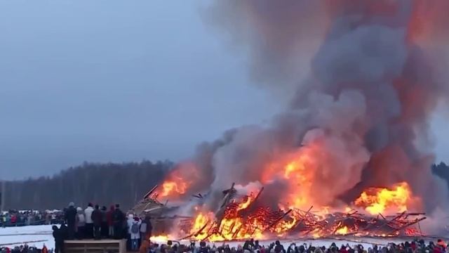 В калужском парке Никола-Ленивец на Масленицу сожгли арт-объект «Четвертая стена», в Подмосковье горела копия археологического памятника Шигирский идол, а в Липецкой области из огнемёта подожгли чучело в виде куклы Хагги Вагги.