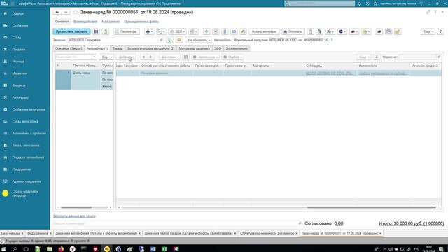 Пример сценария со снятием штатного оборудования с техники в Альфа-Авто редакция 6