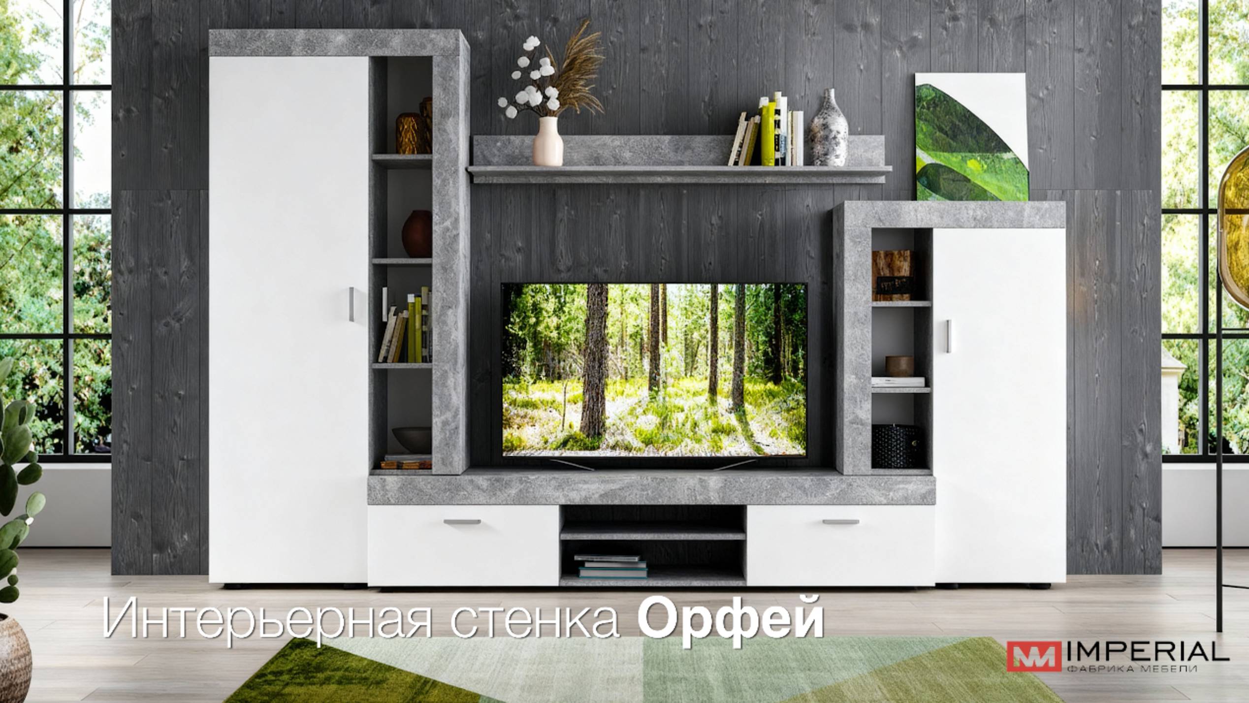 Стенка «Орфей» – яркий представитель стиля минимализма. Стилистическим акцентом являются утолщенные линии корпуса, которые придают выразительность и брутальность стенке. Природная гамма цветов декора – теплый «дуб сонома» и прохладный «белый» создают комфортное светлое пространство. В стенке предусмотрены открытые и закрытые отделения для хранения вещей, медиааппаратуры и TV. Полноценный платяной шкаф с выдвижной поперечной штангой дополнительно можно укомплектовать полками. Материалы стенки экологически чисты и безопасны.