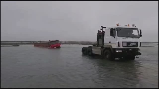Летник севера. Грузовик не смог преодолеть брод реки.