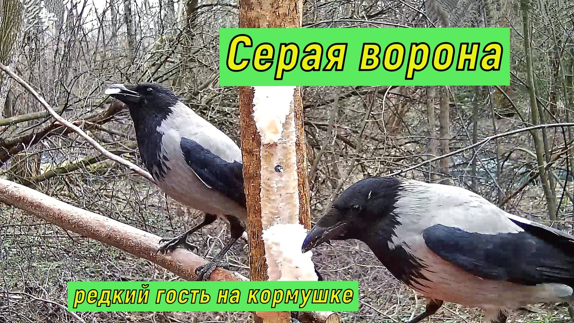 Серая ворона на кормушке