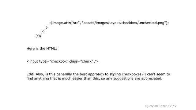 HTML : jQuery - Style checkbox, replace with image [ Beautify Your Computer : https://www.hows.tech/p/recommended.html ] HTML : jQuery - Style checkbox, replace with image Note: The information provided in this video is as it is with no modifications. Thanks to many people who made this project happen. Disclaimer: All information is provided as it is with no warranty of any kind. Content is licensed under CC BY SA 2.5 and CC BY SA 3.0. Question / answer owners are mentioned in the video. Trademarks are property of respective owners and stackexchange. Information credits to stackoverflow, stackexchange network and user contributions. If there any issues, contact us on - htfyc dot hows dot tech #HTML:jQueryStylecheckbox,replacewithimage #HTML #: #jQuery #- #Style #checkbox, #replace #with #image Guide : [ HTML : jQuery - Style checkbox, replace with image ]