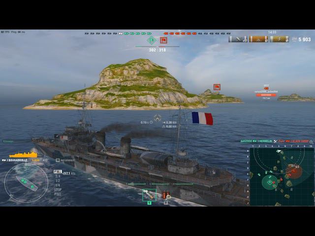 Французский крейсер I уровня Bougainville.Морской бой-15.Игра World Of Warships