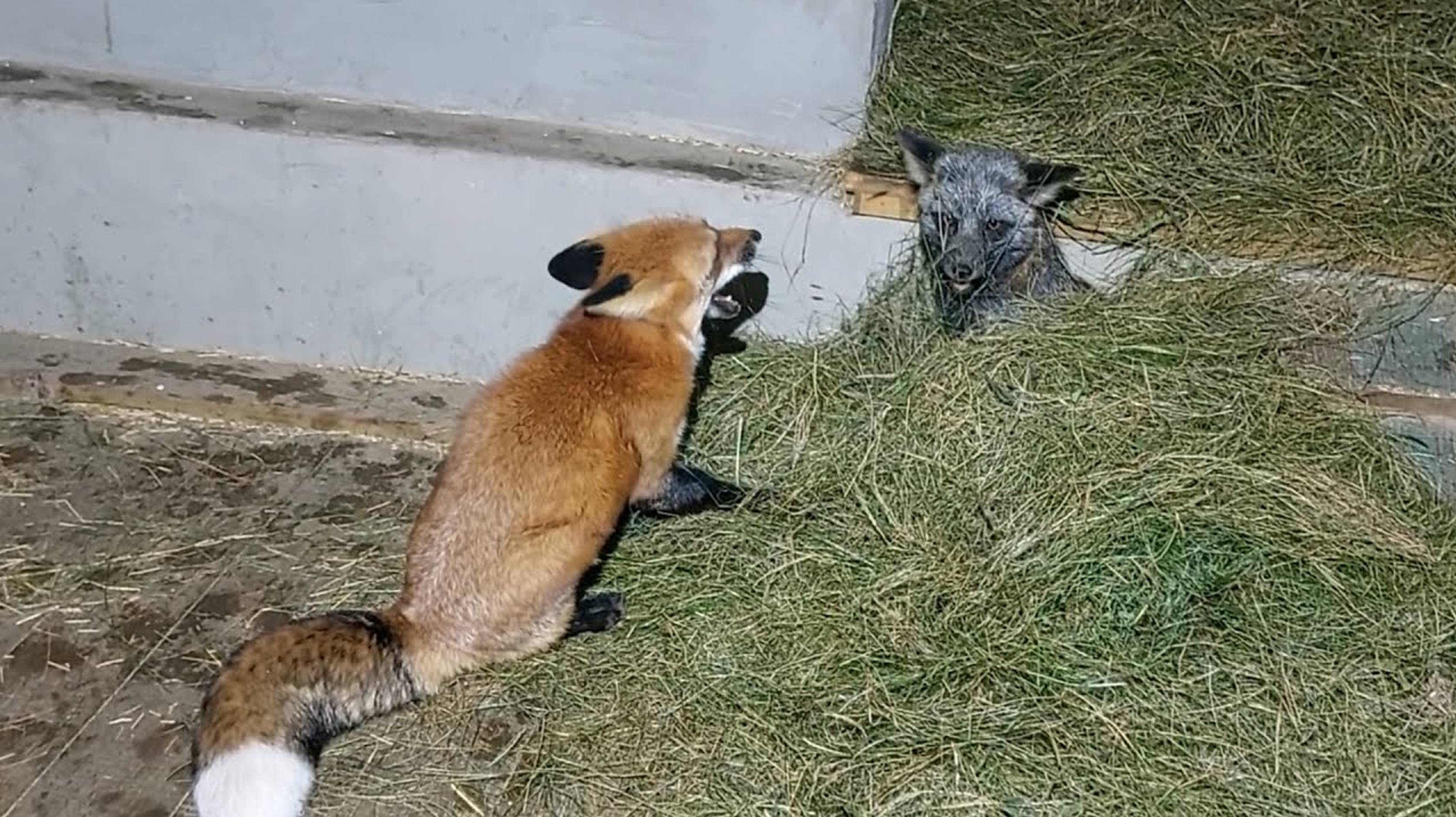 Лисы в дождь на свежем сеновале