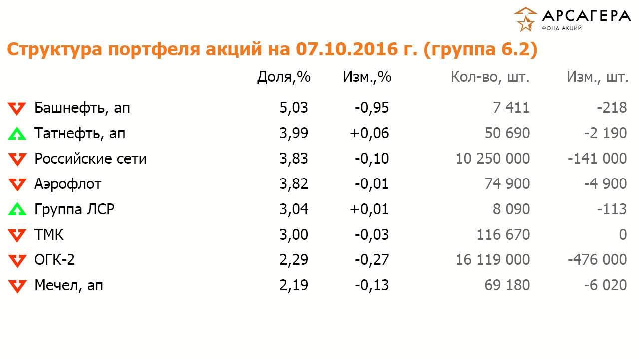 Наши фонды. ОПИФА «Арсагера - фонд акций» с 23.09.16 по 07.10.16