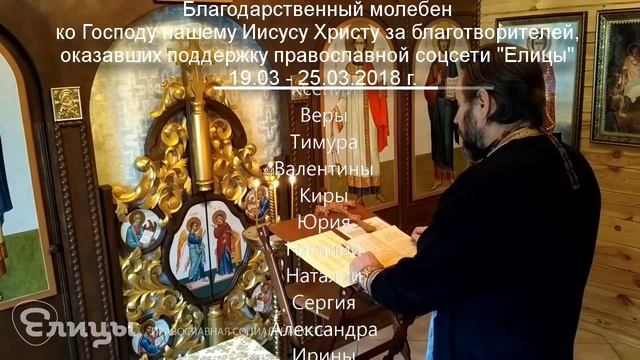 Молебен о здравии и спасении благотворителей благосотворивших с 19 по 25 марта 2018 года