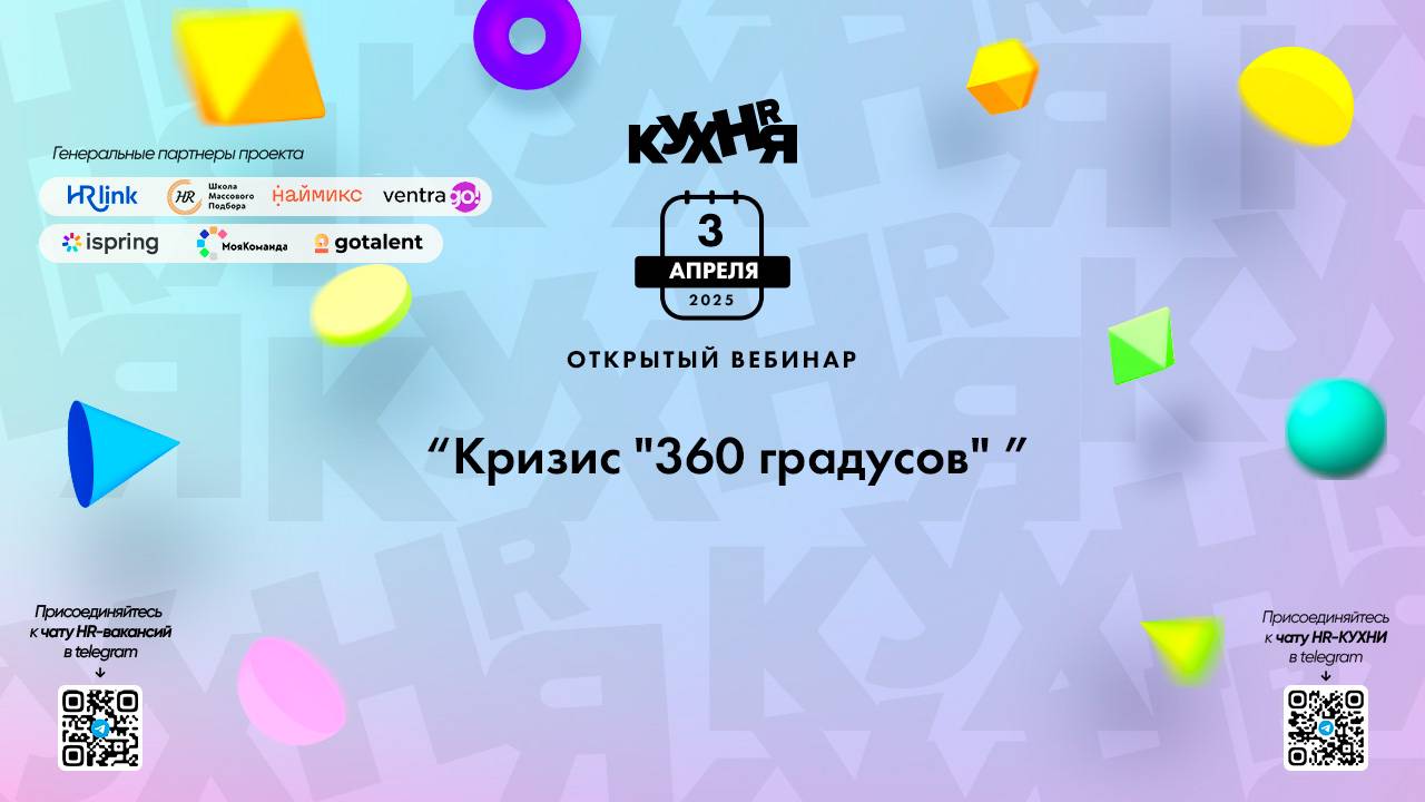 Присоединяйтесь к чатам и каналам HR-КУХНИ в телеграм: - Основной чат HR-КУХНИ в телеграм - https://t.me/+tYgAH0PgPQVkOWIy - Канал HR вакансий в телеграм - https://t.me/+CMNAN2u1hjo3M2Ri - Канал HR-EVENTS в телеграм - https://t.me/hr_kitchen - Канал HR JOURNAL в телеграм - https://t.me/hrkitchenjournal Полезные ссылки: - Каталог HR решений - https://hrkitchen.ru/exhibition - График конференций, бесплатных вебинаров, а также бесплатные курсы – https://hrkitchen.ru/ - Стать спикером HR-КУХНИ - https://hrkitchen.ru/speakers - Подписаться на полезную e-mail рассылку от HR-КУХНИ (новости, гайды, чек-листы, подарки от партнеров) - https://hrkitchen.ru/subscribe