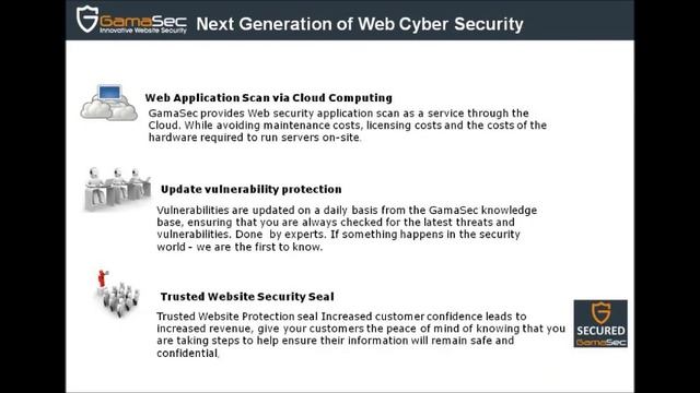 GamaSec is an innovative Cyber security world leading provider of automated web site vulnerability scanning and malware solutions based on Multinational, government and defense knowhow. GamaSec's Web application scanner and malware detection protects applications and servers from hackers. It is an innovative automated Cyber security service that searches for vulnerabilities and malware within web applications.