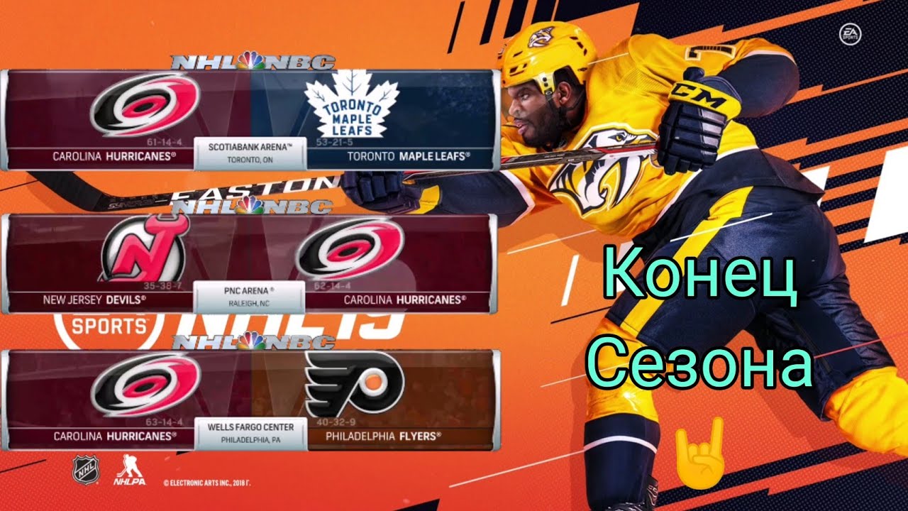 Привет всем любителям хоккея, сегодня мы наконец-то заканчиваем сезон NHL. В завершающей сезон ролике нас ждут Листья, Дьяволы и в очередной раз Крылья. Мы сегодня наконец-то узнаем достигли ли мы порога в 100 шайб за сезон, а также первого соперника в ПЛЕЙОФФ КУБКА СТЕНЛИ. Приятного просмотра))) Навигация: 00:00 - начало 01:40 - 1-й период CAROLINA HURRICANES и TORONTO MAPLE LEAFS 10:41 - 2-й период CAROLINA HURRICANES и TORONTO MAPLE LEAFS 18:06 - 3-й период CAROLINA HURRICANES и TORONTO MAPLE LEAFS 25:14 - 1-й период NEW JERSEY DEVILS и CAROLINA HURRICANES 32:40 - 2-й период NEW JERSEY DEVILS и CAROLINA HURRICANES 39:48 - 3-й период NEW JERSEY DEVILS и CAROLINA HURRICANES 48:09 - 1-й период CAROLINA HURRICANES и PHILADELPHIA FLYERS 54:34 - 2-й период CAROLINA HURRICANES и PHILADELPHIA FLYERS 1:00:11 - 3-й период CAROLINA HURRICANES и PHILADELPHIA FLYERS