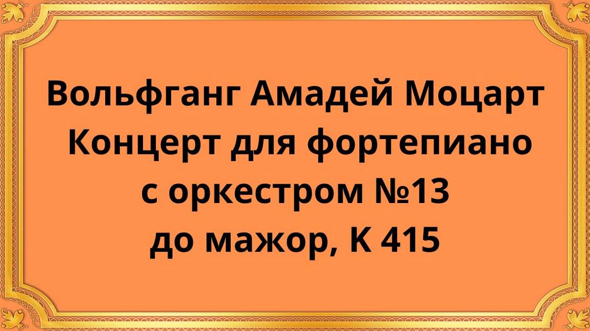 Вольфганг Амадей Моцарт Концерт для фортепиано с оркестром №13 до мажор, K 415