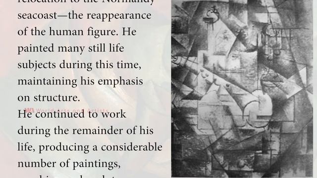 Georges Braque Georges Braque was born on 13 May 1882, died on 31 August 1963. He was a major 20th century French painter, collagist, draughtsman, printmaker and sculptor. His most important contributions to the history of art were in his alliance with Fauvism from 1905, and the role he played in the development of Cubism. Braque's work between 1908 and 1912 is closely associated with that of his colleague Pablo Picasso. Their respective Cubist works were indistinguishable for many years, yet the quiet nature of Braque was partially eclipsed by the fame and notoriety of Picasso. Braque resumed painting in late 1916. Working alone, he began to moderate the harsh abstraction of cubism. He developed a more personal style characterized by brilliant color, textured surfaces, and—after his relocation to the Normandy seacoast—the reappearance of the human figure. He painted many still life subjects during this time, maintaining his emphasis on structure. He continued to work during the remainder of his life, producing a considerable number of paintings, graphics, and sculptures. Braque along with Matisse is credited for introducing Pablo Picasso to Fernand Mourlot, and most of the lithographs and book illustrations he himself created during the 1940s and '50s were produced at the Mourlot Studios. During the period between the wars, Braque exhibited a freer style of Cubism, intensifying his color use and a looser rendering of objects. However, he still remained committed to the cubist method of simultaneous perspective and fragmentation. In contrast to Picasso, who continuously reinvented his style of painting, producing both representational and cubist images, and incorporating surrealist ideas into his work, Braque continued in the Cubist style, producing luminous, other-worldly still life and figure compositions. By the time of his death in 1963, he was regarded as one of the elder statesmen of the School of Paris, and of modern art. Follow Us : worldartsandartists@gmail.com fb.me/worldartsandartists +91 9840 607646 @whatsapp Advertising Partner: Are you interested to learn drawing and painting professionaly For More Details : 9944 341 414 / http://www.dessinacademy.com/