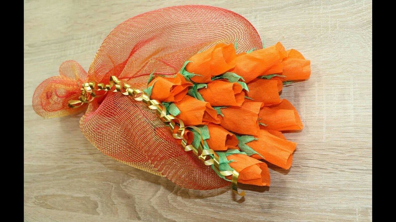 Самый простой способ сделать Букет из КОНФЕТ /DIY crafts : How to make crepe paper flowers