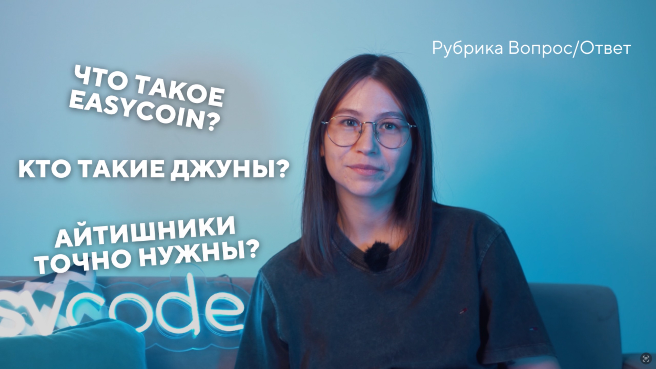 Бесплатное занятие - https://clck.ru/3ECuvg Подписывайтесь и узнавайте больше: Наш сайт: https://easycode.tech/#submenu:school ВКонтакте: https://vk.com/easycode_school Инстаграм*: https://www.instagram.com/easycode.school *Признана экстремистской организацией и запрещена на территории РФ. На нашем канале вы узнаете, как научить ребенка: 📲 программированию и разработке дизайна; 💻 создавать сайты и приложения, разрабатывать новые игры; 📝 английскому языку; 📕современным и востребованным знаниям в цифровом мире. Подписывайтесь на наш канал и вы будете в курсе самых последних новостей в современном цифровом мире! ✌🏻 Онлайн-школа программирования EasyCode – это новый подход в обучении детей через развлечение, который поможет освоить навыки перспективных профессий. У EasyCode есть своя обучающая платформа. На ней ребенок посещает занятия, выполняет домашние задания, проходит логические задачи, может создавать своего игрового героя и обменивать изикоины на подарки. Таймкоды: 00:00 - 00:39 - О рубрике 00:40 - 1:15 - Мне подходит программирование? 1:16 - 1:38 - IT - это востребовано? 1:39 - 2:21 - Об изикоинах 2:22 - 2:41 - Подарок для зрителей 2:42 - 4:08 - 2 направления одновременно - так можно? 4:09 - 5:14 - Работа в IT-компаниях 5:15 - 5:31 - До встречи на следующей неделе!
