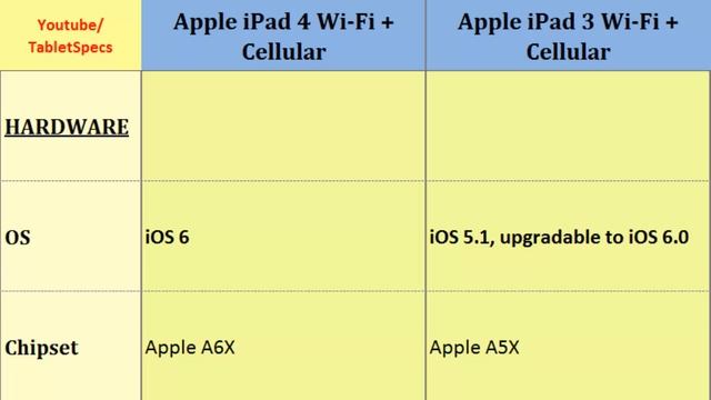 Apple iPad 4 Wi-Fi + Cellular or Apple iPad 3 Wi-Fi 3G, Key features and differences