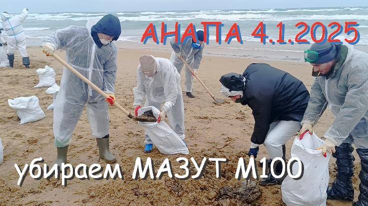 4 января с коллегами из нескольких подразделений Администрации Краснодарского края выехали на побережье у Анапы и на знаменитые пляжи анапского песка - убираем последствия разлива мазута... 30 декабря попросили всех, кто может поработать 4 января , взять с собой свои резиновые сапоги, перчатки и респиратор. Выезд задолго до рассвета, к пляжам подъехали ккк раз когда рассвело.. На месте выдали лопаты и разовые комбинезоны из нетканого материала. Под руководством специалистов МЧС, они там на месте командуют всем, собирали с пляжа комки мазута, свалявшиеся с песком, складывали в мешки , которые потом техника куда-то отвозила. Работа в режиме 2 часа собираем - 1 час на отдохнуть-перекусить - рядом полевая кухня с кашей, супом и чаем. И снова на пляж на 2 часа... Так до конца светового дня. Но в тот день непогода разогнала чуть раньше. Экологическая катастрофа, произошедшая 15 декабря 2024 года из-за разлома корпусов двух российских танкеров класса Волгонефть («Волгонефть-212» и «Волгонефть-239») в Керченском проливе в результате шторма. Произошёл разлив топочного мазута марки М100. Это первая в мире авария с топочным мазутом, который по плотности почти как вода и тяжелее, и, в отличие от других нефтепродуктов, не всплывает на поверхность, а уходит на дно или плавает в толще воды. В мире нет испытанных технологий по его удалению из толщи воды. По этому основной способ очистки — сбор с береговой линии, когда мазут выбрасывает в прибрежную зону. Пятно мазута вынесло на берег протяжённостью около 35 км — от посёлка Веселовка Темрюкского района до пляжей близ Анапы. съемка и монтаж Михаил МЕРИНОВ