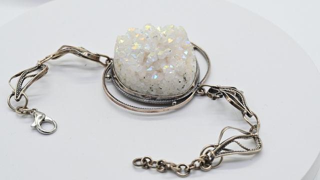 Браслет из горного хрусталя щетка с титановым напылением, 17 см вз555002