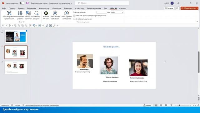 Дизайн слайдов с картинками с помощью Slider AI в PowerPoint