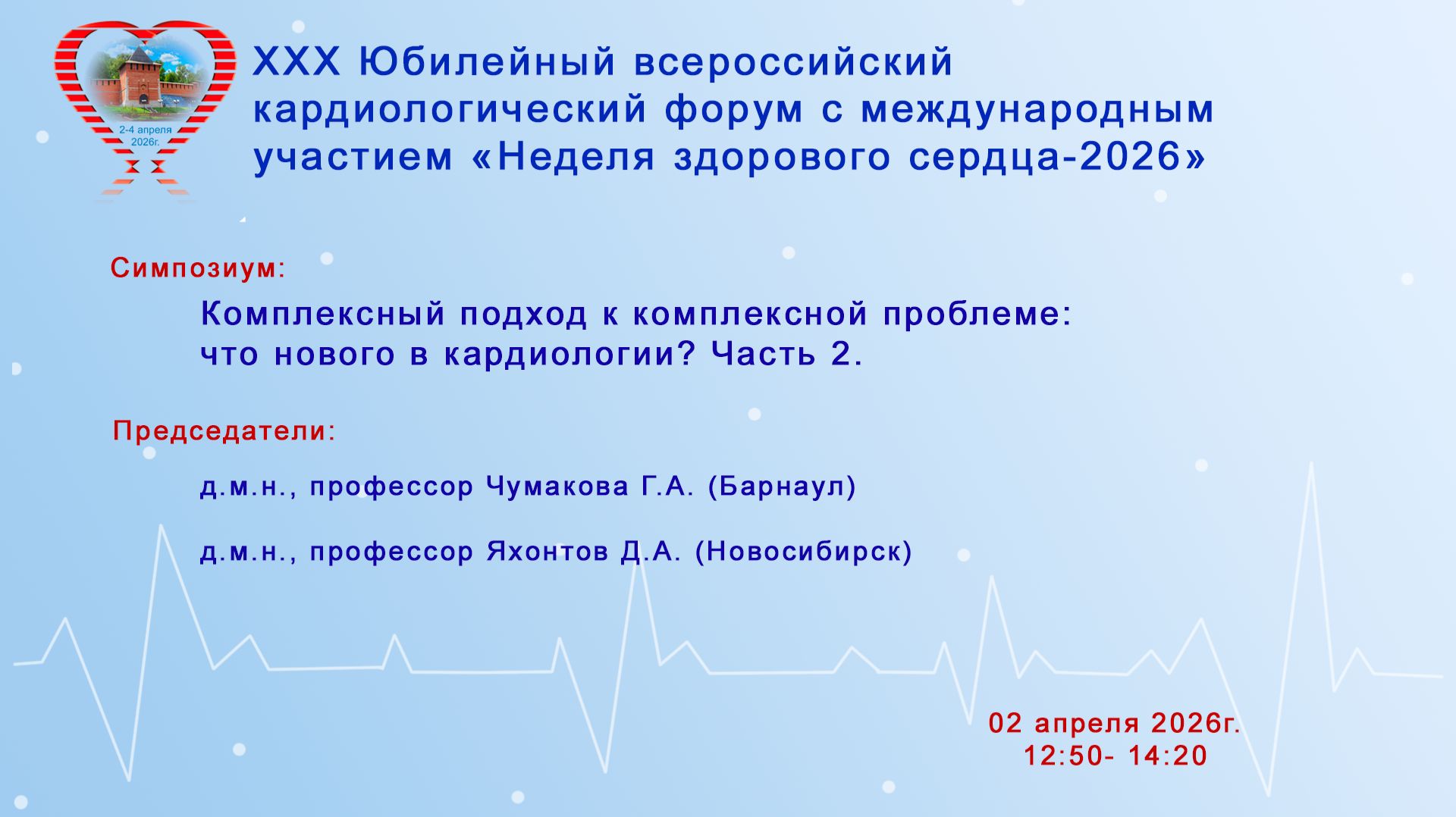 Председатели: д.м.н., профессор Чумакова Г.А. (Барнаул) д.м.н., профессор Яхонтов Д.А. (Новосибирск)