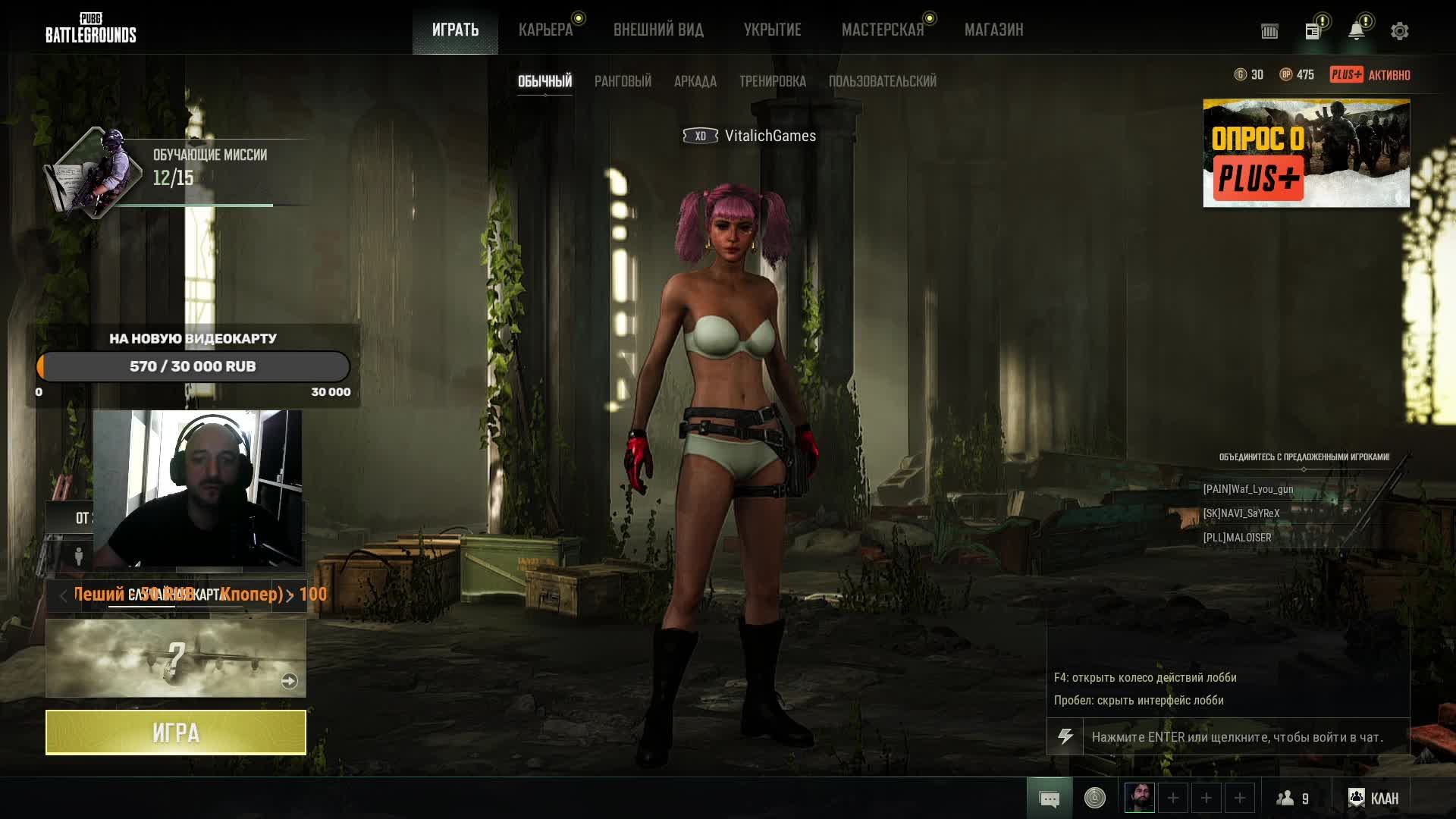 ?Поддержать стримера монеткой для улыбки? ?Донат - https://www.donationalerts.com/r/vitaliano2030 ?Карта сбер: 2202 2061 1424 8177 ?Уралсиб 4242 9010 2958 4587 ?Альфа Банк 4790 0430 7994 1908 ?Мтс 5246 0291 1848 8800 ?Тинькофф 5213 2440 0300 3676 ?ОТП Банк 5213 3011 1136 3903 ?СВЯЗЬ СО МНОЙ? ➤ПОЧТА: vit2030vit@mail.ru Мой ПК ║ Монитор: ViewSonik VX2239WM-3 ║ Процессор: Ryzen™ 5 3600 ║Материнская плата Gigabyte b450 aorus elite 2v ║ Видеокарта : Palit GTX 1650 4gb ║ ОЗУ: KINGSTON HYPERX FURY DDR4 32GB 2666Mhz ║ Мышь: Bloody V8 ║Микро: SUNWIND ║Веб-камера: Defender G-Lens 2694 Full HD ✉ ПРАВИЛА ЧАТА ✉ ║ ► Запрещены: Оскорбления в чей либо адрес. ║ ► Запрещены: Флуд, Капс, Спам, Реклама, Мат. ║ ► Запрещены: Разговоры о политике. ║ ► Запрещено: Создавать негативную атмосферу в чате.