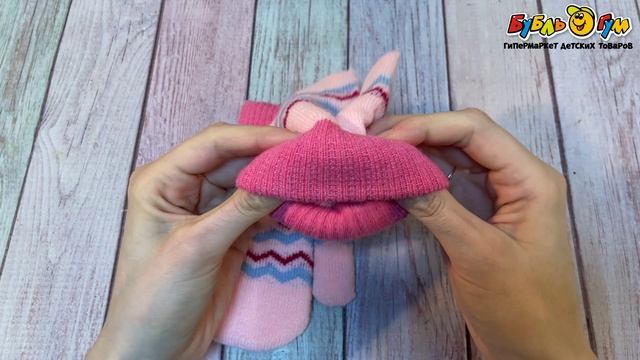 331262 Рукавицы Lanson Kids зимние с разноцветными линиями розовые