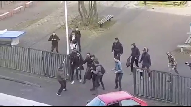 Студенты голландского колледжа Scala отбились от мужчины, который был вооружен двумя огромными ножами. На видео видно, как группа студентов преследует мужчину, который держит в руках ножи. Возле ограды мужчина встает в боевую стойку, но не решается напасть, а после того, как студенты бросают в него рюкзак, он убегает.По данным СМИ, позднее полиция задержала 44-летнего мужчину и конфисковала у него холодное оружие. Подчеркивается, что у злоумышленника не все в порядке с психическим здоровьем. #школьники #оборона #нападение