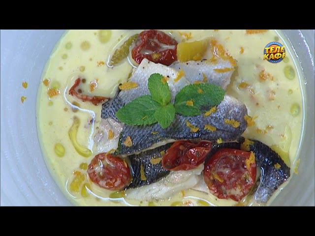 Запечённое филе сибаса с апельсиновым фондю \\ Паста фузилли с купатами, брокколи и чёрным трюфелем