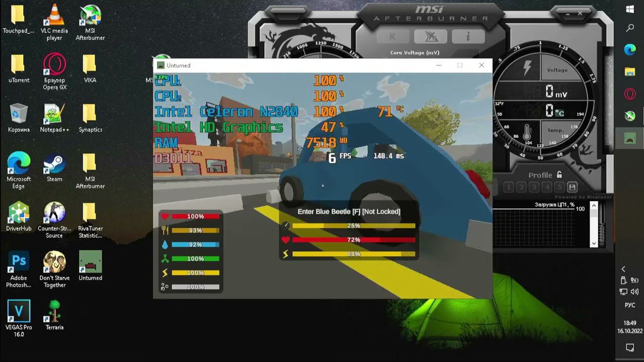 Unturned Intel Celeron N2840 RAM 8GB DDR3L 1600 Intel Graphics 60 FPS Laptop GAMEPLAY ultra low