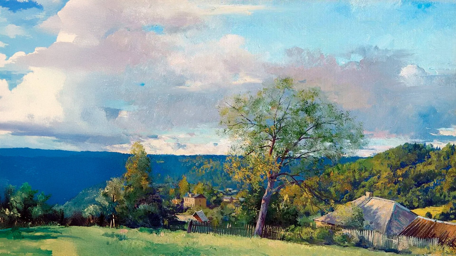 🎨 Шевелёв Александр Викторович 🌾 Современный новгородский деревенский пейзаж 🏡 Не Город, но Весь 🕯️🌬️ Сначала — будто ничего не происходит. Снег, двор, женщина с ведром, пёс, тень от сарая. Но именно в этом — ритм, свет, дыхание. Перед нами — не альбом, не выставка. Это скорее видеоритм памяти: движение света между словами. Тишина не исчезает — она прописана в мазке. 🏡🌲🐓 Вот моя деревня: 🏠❤️ Вот мой дом родной; 🛷🧒 Вот качусь я в санках ⛰️❄️ По горе крутой; 💫🛷 Вот свернулись санки, 🤸❗ И я на бок — хлоп! 🔁🧒 Кубарем качуся ⬇️❄️⛷️ Под гору, в сугроб. 👦👦👦 И друзья-мальчишки, 👀🧒 Стоя надо мной, 😂😂 Весело хохочут 🧊😅 Над моей бедой. 👋😄 Всё лицо и руки ❄️😶🌫️ Залепил мне снег… 😖🥶 Мне в сугробе горе, 😆🎉 А ребятам смех! .... 🕰️😄 Весело текли вы, 👶🌈 Детские года! 🚫🌧️ Вас не омрачали 🙅💔 Горе и беда. Иван Суриков 📜 1866 г. 🕰️📖 🌿📍 Сельские хроники Любытинского района 🗺️🏞️ Веси одного края — и всей памяти Пейзажи Шевелёва сосредоточены в весиях Любытинского района Новгородской области — в Шереховичах, Колоколуше, Каменке, Равне. Это не просто топонимы — это внутренние координаты, расставленные в сердце. 🌱🏡 Шереховичи — родина художника Именно здесь, в селе Шереховичи, в 1964 году родился Александр Викторович Шевелёв. Это не просто место начала — это точка возвращения. Каждая сцена, написанная здесь, — не наблюдение, а воспоминание. Здесь художник не гость, а свидетель. И потому «Март в Шереховичах», «Закат солнца в Шереховичах», «Поля в Шереховичах» — звучат как главы личной летописи. 🏰🌊 Каменка — склон памяти и озеро у подножия А в Каменке, где когда-то находилась усадьба А.В. Суворова, пейзаж сам по себе становится историей. Склон, озеро, тишина — всё это не антураж, а дыхание времени. Каменка. Первый снег — не просто картина, а топографический этюд памяти. 🐾🐕 Осень в Равне, вечер в Колоколуше Жёлтые листья, тропинка и лужи. Люди в пальто и следы в снегу. Солнечный отблеск на крыше. Не жанровые сценки, а — дыхание, отголоски. Сельские хроники без героев — но с настоящим временем. 🐄🖼️ Пейзаж, которого не было, но был 👣🐾 Корова, собака, телёнок — не персонажи, а соучастники В «Сильвер и Тума» — собаки не сторожат, а слушают ветер. В «Коровы в тени яблонь» — день стоит, как на вдохе. А «Вечерний пейзаж с телёнком» — как детство, которое никто не рисовал, но которое было. 🪞🖌️ Это Пейзаж, которого не было, но был: из прошлого, которое узнаётся, даже если ты там не жил. 🎞️🔍 Четыре взгляда на одно место 📷✨ Один оригинал и три варианта от Leonardo.ai Один — сквозь Topaz: резкость, свет, зерно мазка. Второй — 50% сродства: дрожание края. Третий — 40%: отклонение цвета. Четвёртый — 30%: почти отголосок. 🔄🧭 Всё вместе — Четыре взгляда на одно место, как четыре угла души. Так появляются не реплики, а версии чувств. Это не размножение изображения, а раскрытие глубины замысла. Молчаливый рассказ — язык, в котором различие становится формой смысла. 🐄🌇 Там, где корова видит горизонт 👁️👣 Пейзаж с уровня земли, а не небес У Шевелёва горизонт — это не линия. Это забор, окно, след на тропинке. Он смотрит не сверху, а изнутри. Там, где корова видит горизонт, начинается правда. 🎮🌫️ Об интерактивном взаимодействии со слайд-шоу 🧭📼 Как смотреть — дыхание, а не поток Это не фильм, не экскурсия, не каталог. Это — видеодвижение между о