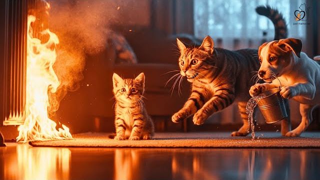 Котенок попал в пожар в доме 😿🔥 — Смелое спасение кошки и собаки растопит ваше сердце ❤