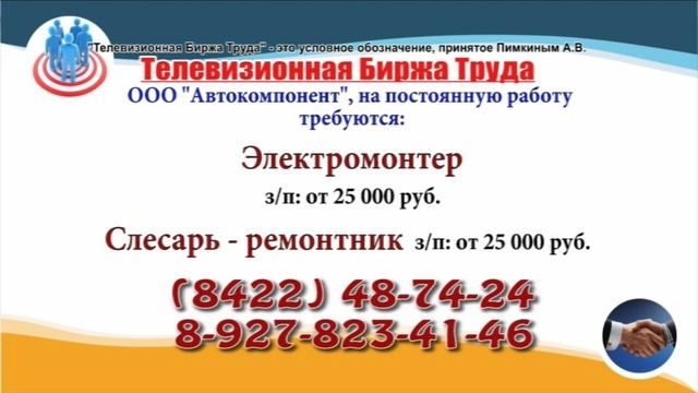 Вакансии и телефоны прямых работодателей в специализированной программе по трудоустройству "Телевизионная Биржа Труда" - г.Ульяновск