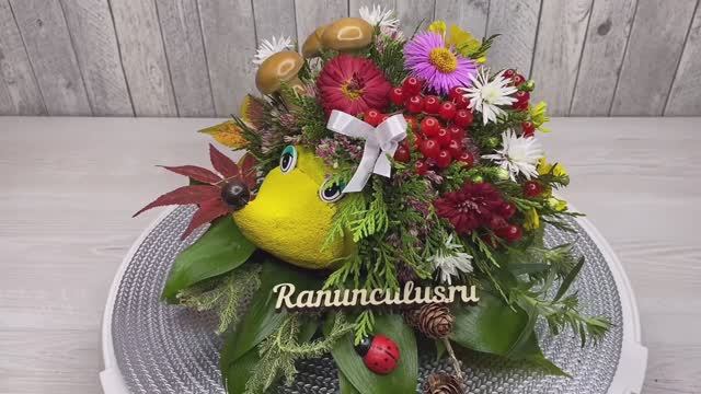 Оригинальная фигурка ежика из туи и живых цветов. Фигурка ежика из живых цветов и туи. Ёжики из живых цветов от интернет-магазина Ranunculus.ru ? https://ranunculus.ru/igrushki-iz-tsvetov/ezhiki-iz-tsvetov/ Сайт ? https://ranunculus.ru