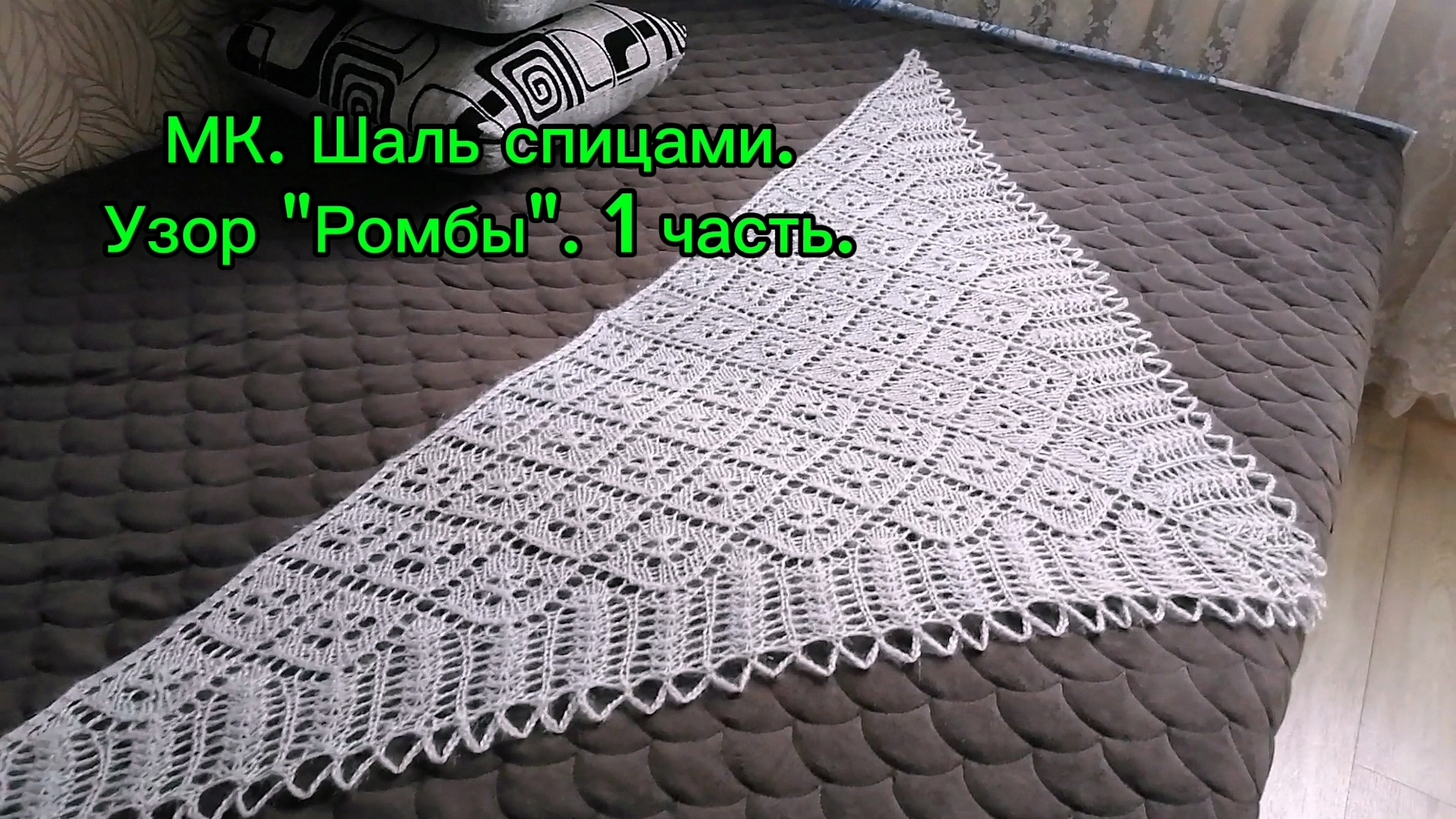 МК. Шаль спицами "Цветы в ромбах". Легко. 1 часть. 2 часть- будет кайма и закрытие арками крючком.