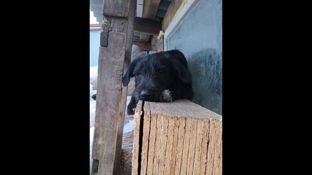 Пёсик Ральф охраняет строй материалы для вольеров, но укоризненно смотрит на маму