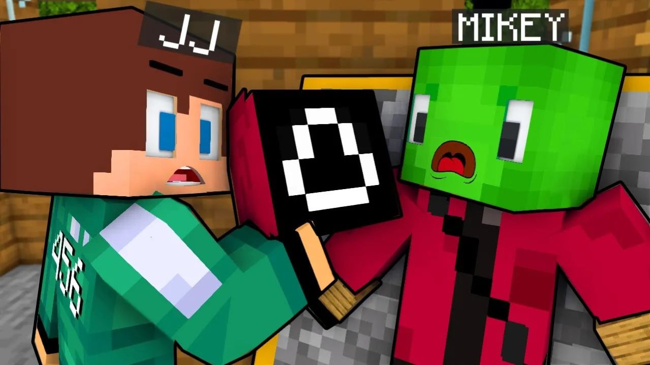 Джей Джей был шокирован, что Майки прячется под игровой маской Кальмара. Майнкрафт Мультик
