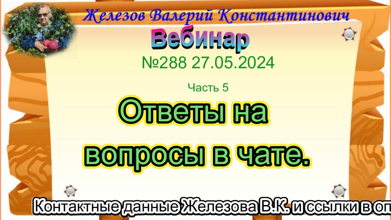 Железов Валерий. Вебинар 289. ч. 5. Ответы на вопросы в чате.