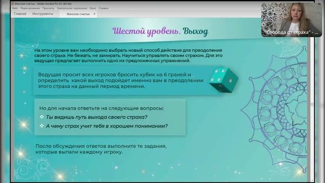 План обучения по психологической игре «Свобода от страха». 1. Встреча: Вы поймете, почему ваш страх мешает вам. Увидите как он руководит вами, узнаете происхождение своего страха. Сможете определить зону вашего контроля. Поймете как перестать контролировать то, что никогда не будет во власти вашего контроля. Вы выберите свои точки опоры, которые помогут вам преодолеть ваш страх. Практическая часть: практика «Освобождение от страха отвержения», медитация «Опора рода», создание мандалы «Я есть». 2. Встреча: Сможете увидеть и трансформировать все ограничивающие интроекты, которые стояли за вашим страхом. Определите главное чувство, которое стояло за страхом и переведете его в полезное убеждение. Увидите таланты, которые сможете противопоставить собственному страху и ресурс, который поможет вам в дальнейшем развивать ваши таланты. Поймете в какой сфере вам необходимо проявлять свои таланты. Практическая часть: диалог со страхом, практика «Работа со страхом», создание мандалы «Путь из лабиринта». 3. Встреча: Осознаете какую цену вы платите за присутствие этого страха в своей жизни и какой главный посыл стоял за вашим страхом. Вам будет предложено индивидуальное упражнение по выходу из своего страха, которое откроет вам путь вперед к вашим целям и желаниям. Поймете основной урок этого страха, чему учил и на что указывал страх в вашей жизни в хорошем понимании. Вы увидите свой путь выхода своего страха. Практическая часть: «Осознание причин страха», создание обережной мандалы «Мельница». 4. Встреча: Сможете понять кому или чему вы можете доверять в своей жизни, а так же, что поможет вам развивать и усиливать доверие. Поймете, за что вы можете быть благодарны своему страху. Практическая часть: «Послание небес», медитация «Отпускаю свой страх, когда страшно за свое будущее», создание мандалы: «Новизна жизни» или «Умиротворение». Для записи вотц.ап 8-910-116-78-45
