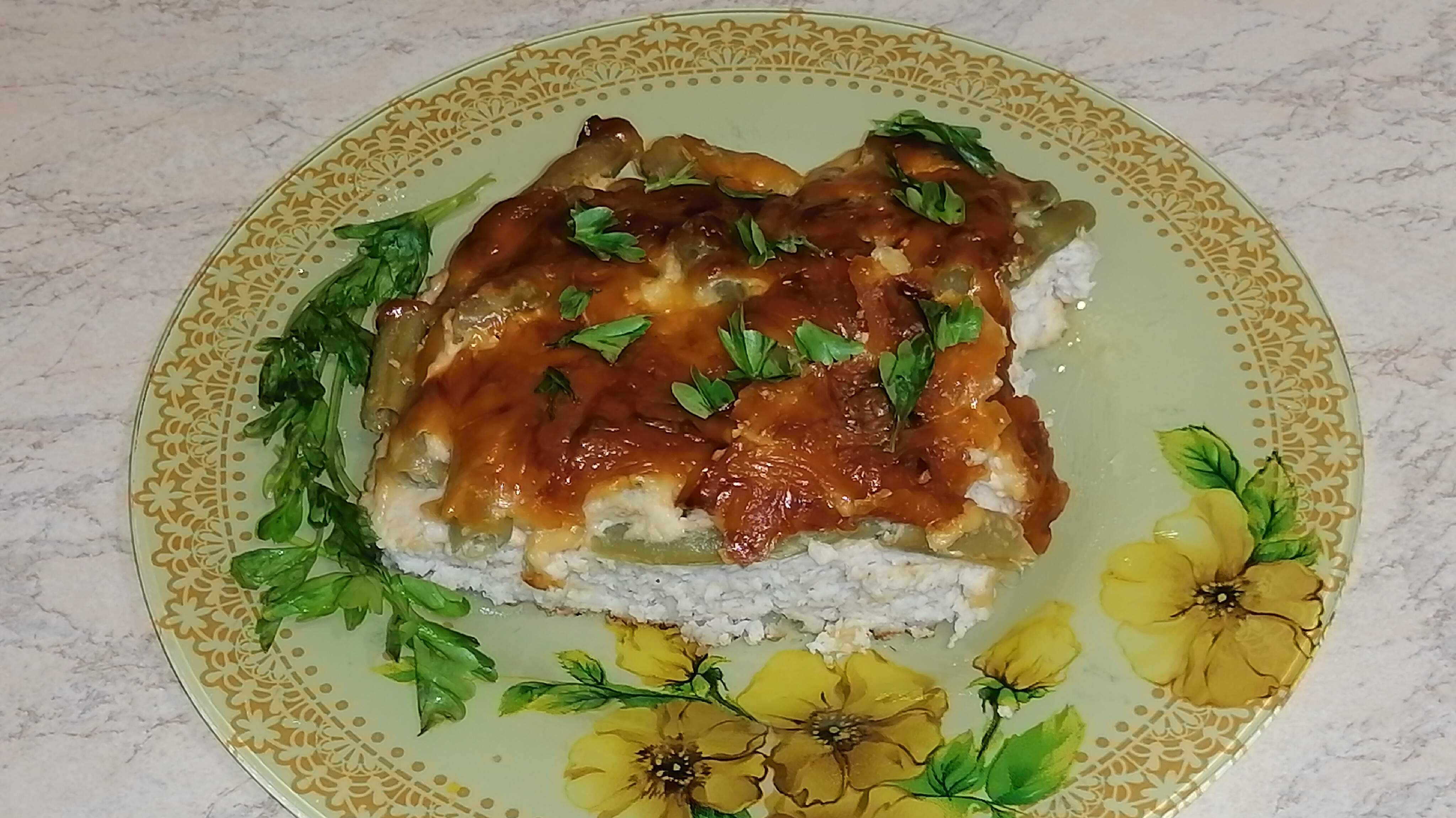Запеканка с фаршем и стручковой фасолью