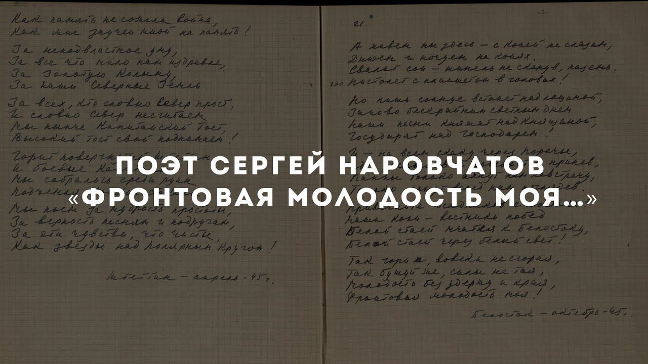 Сергей Сергеевич Наровчатов (1919 - 1981) – советский поэт, писатель, литературовед и публицист. Родился в г. Хвалынске Саратовской области. В 1933 г. вместе с родителями приехал на Колыму, окончил магаданскую среднюю школу № 1. В 1937 г. поступил в московский Институт философии, литературы и истории (МИФЛИ). В 1939 г. вместе с группой студентов ушёл добровольцем на финскую войну. В 1941 г. окончил МИФЛИ и Литературный институт. В 1941 г. С. С. Наровчатов вновь ушёл добровольцем на фронт, работал в редакциях армейских газет. Войну прошёл от начала до конца, встретил победу 8 мая 1945 г. в Германии на Эльбе. За участие в боях был награждён орденами и медалями. Военная и историческая темы стали главными в поэзии С. С. Наровчатова. Официальный сайт: www.magadanmuseum.ru ВКонтакте: https://vk.com/magadanmuseum Instagram: https://www.instagram.com/magadan_museum Twitter: https://twitter.com/magadanmuseum