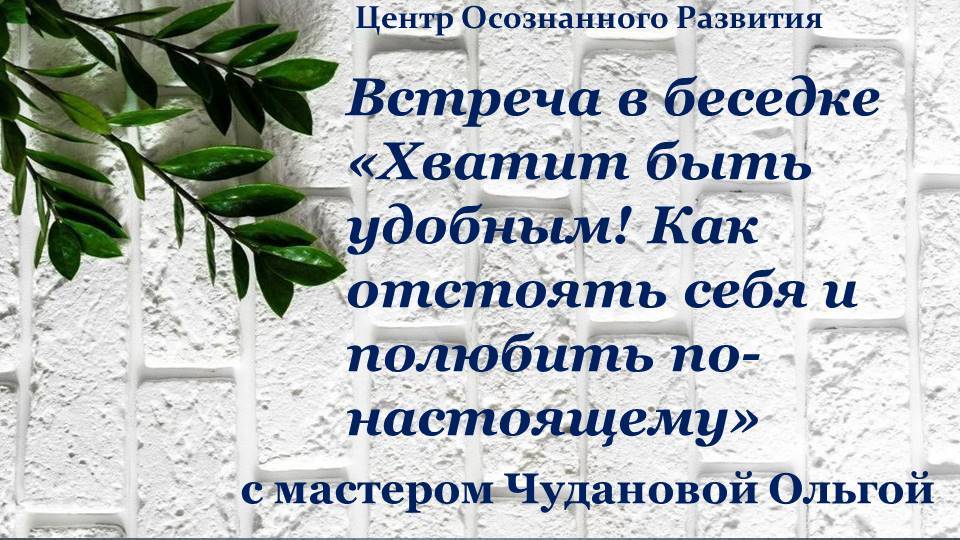 Встреча в беседке "Хватит быть удобным! Как отстоять себя и полюбить по-настоящему" 25.06.2025