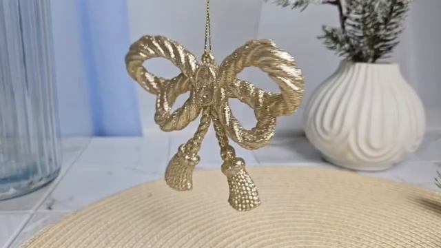 Ёлочное украшение ПЛЕТЁНЫЙ БАНТИК, акрил, шампань, 11 см, 191215