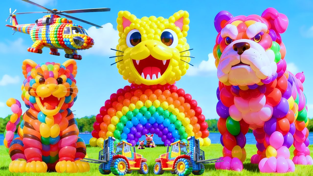 Мультики для детей, машинки из разноцветных шариков/шарики, машинки, мультик