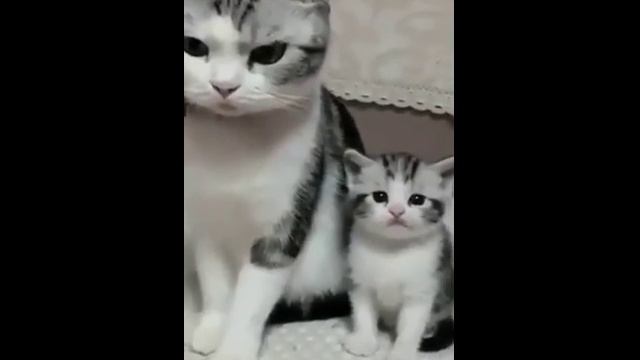Взрослая мама-кошка и её маленькая дочь